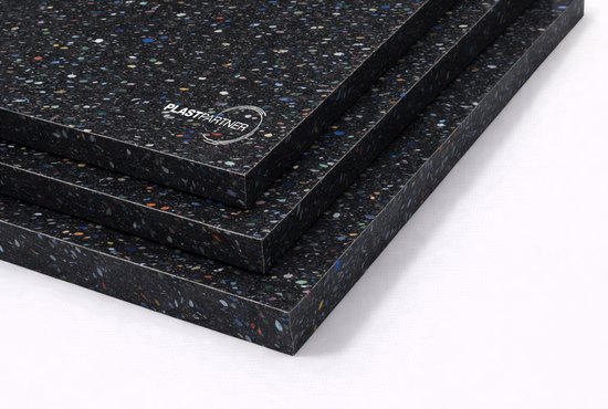 Nejlevnější konstrukční plast PE 500 recyklát, barva confeti-vícebarevný, nebo černý. Lisované desky vyrobené ze zbytků PE 500/1000. Vhodný na výrobu hřebenů do palet v automobilovém průmyslu, konstrukčních prvků ve všech průmyslech.