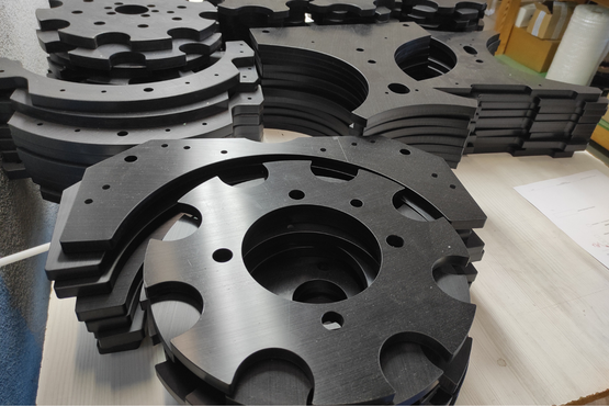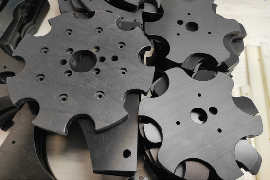 1. Vyrobit různé typy vodicích a rozvodných komponentů z materiálu PE-UHMW 1000.